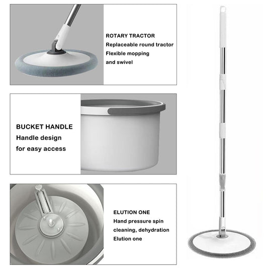 360° Spin Mop and Bucket Set - Self-Separating System, 2 Microfiber Pads, For Floor Cleaning