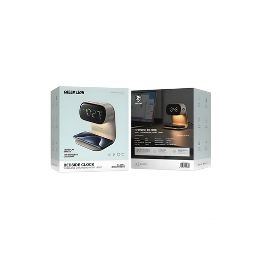 Green Lion Bedside Clock with Wireless Charger - Wood