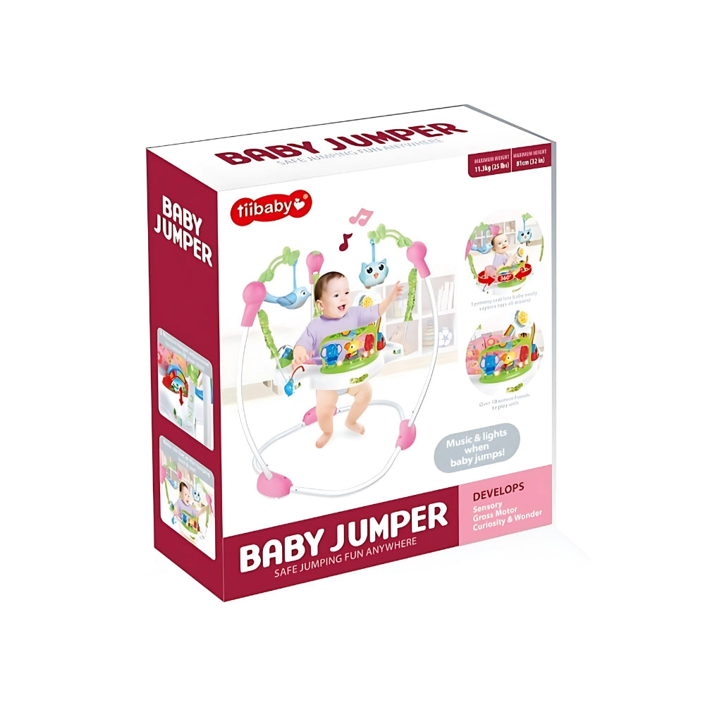 Provide your baby with safe and engaging entertainment with the Tiibaby Safe Jumping Fun Baby Jumper! This interactive baby jumper is designed to encourage healthy development through sensory stimulation, gross motor skill enhancement, and curiosity, while offering music and lights with every jump.